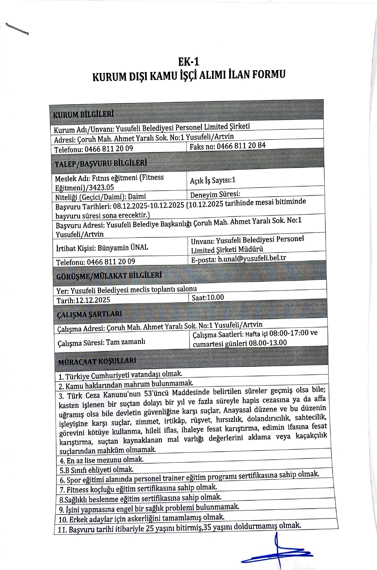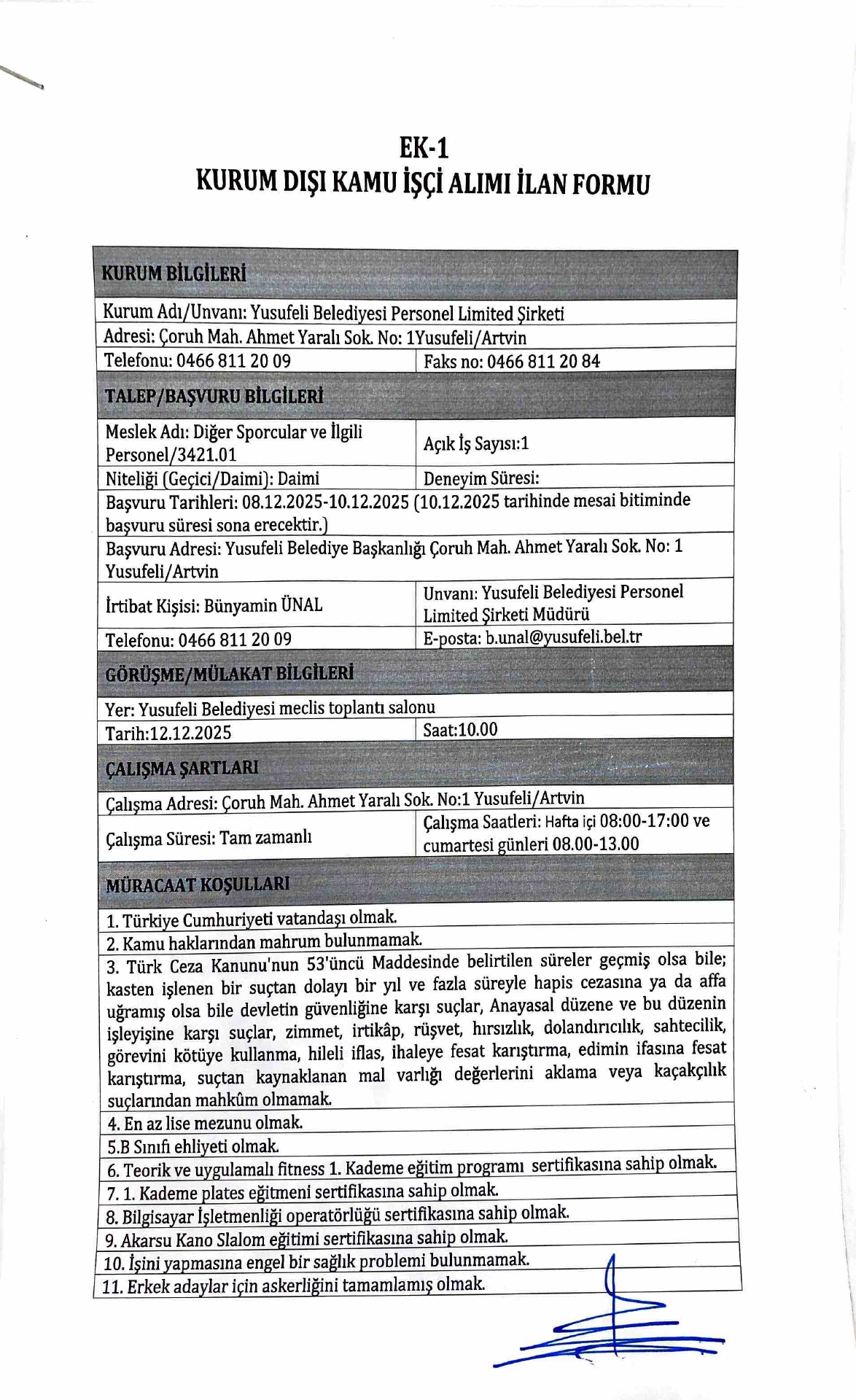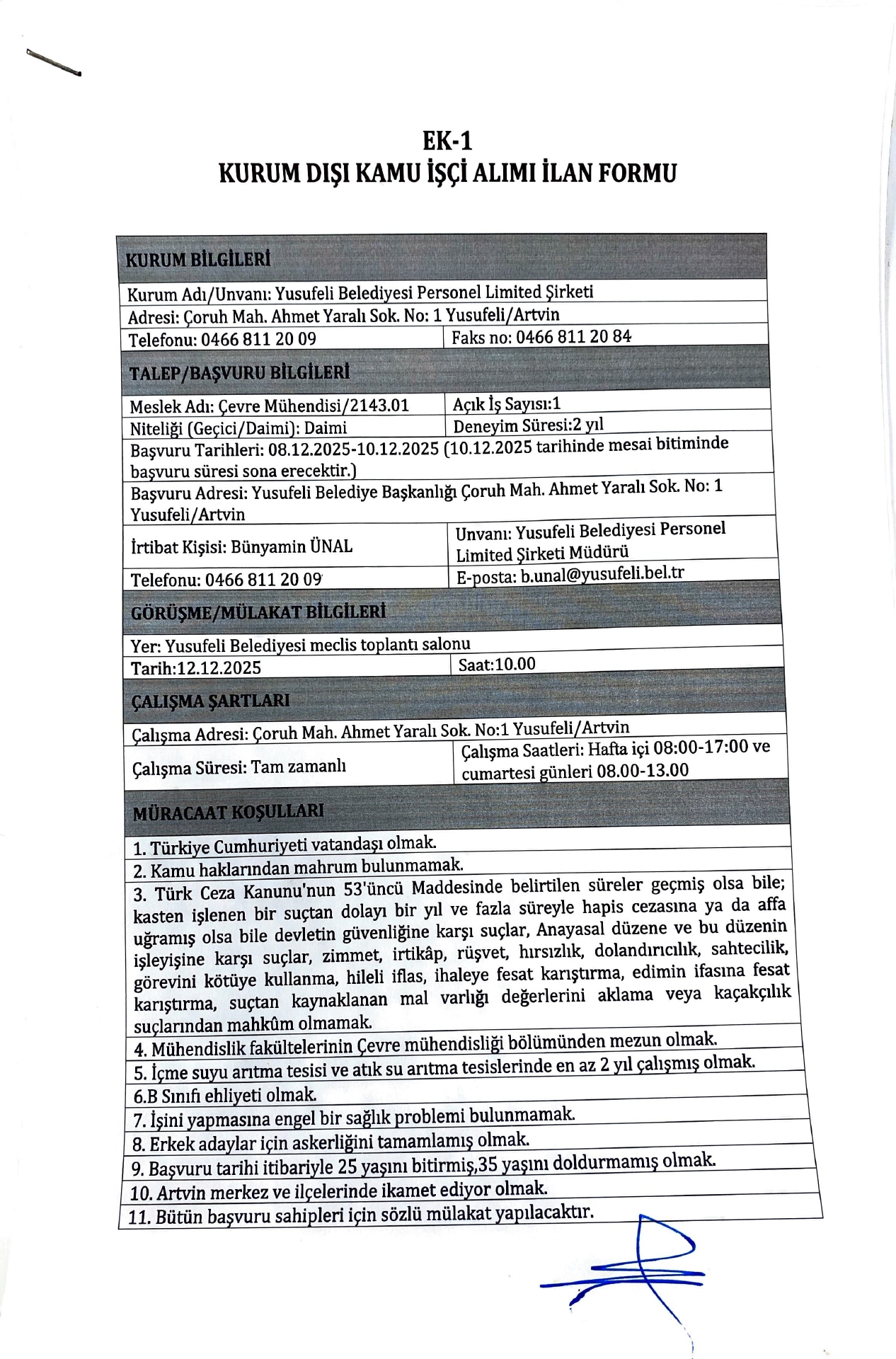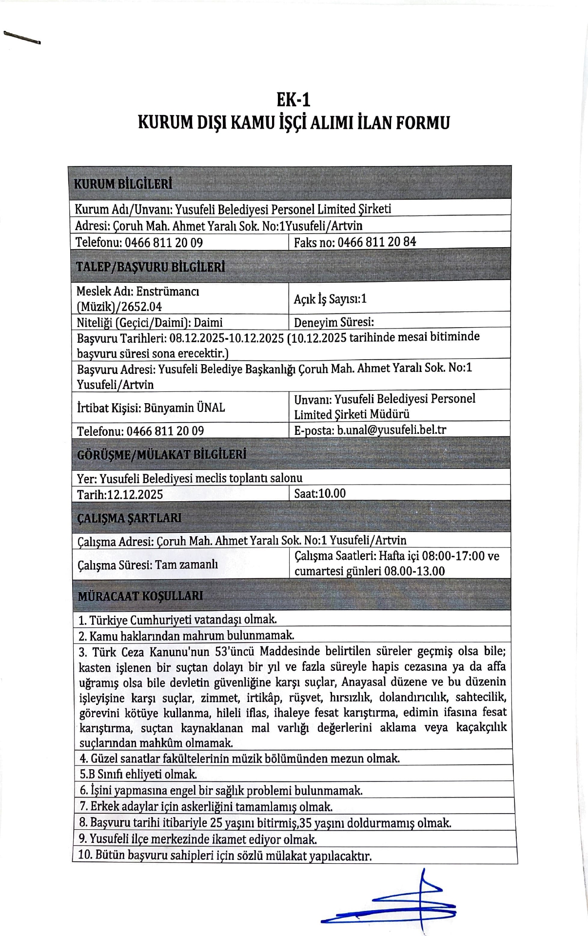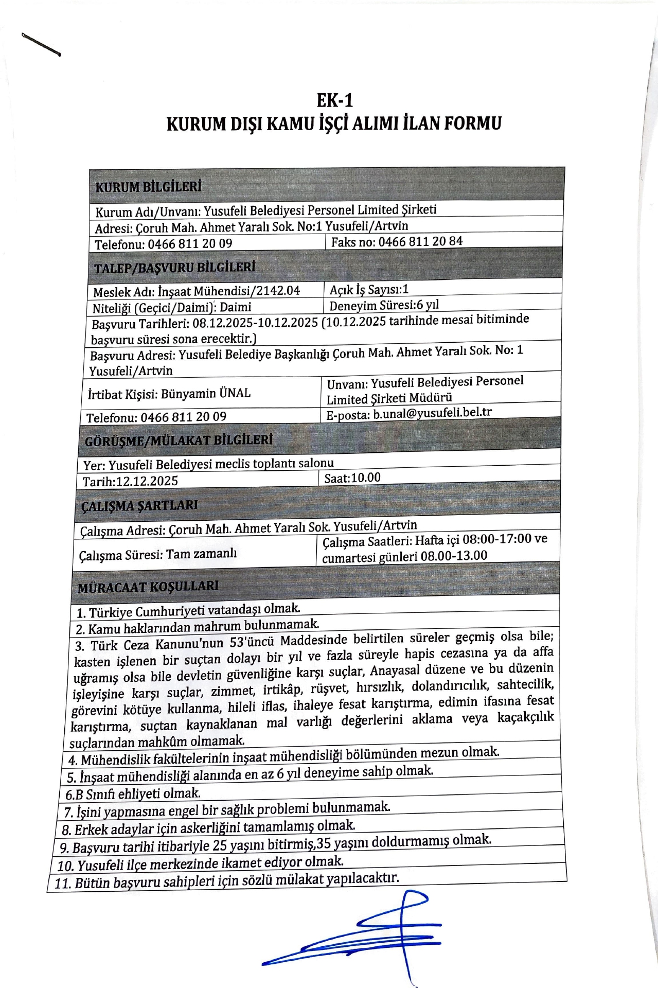Artvin Yusufeli Belediyesi 5 Emekçi Alacak. Son müracaat tarihi 10 Aralık 2025