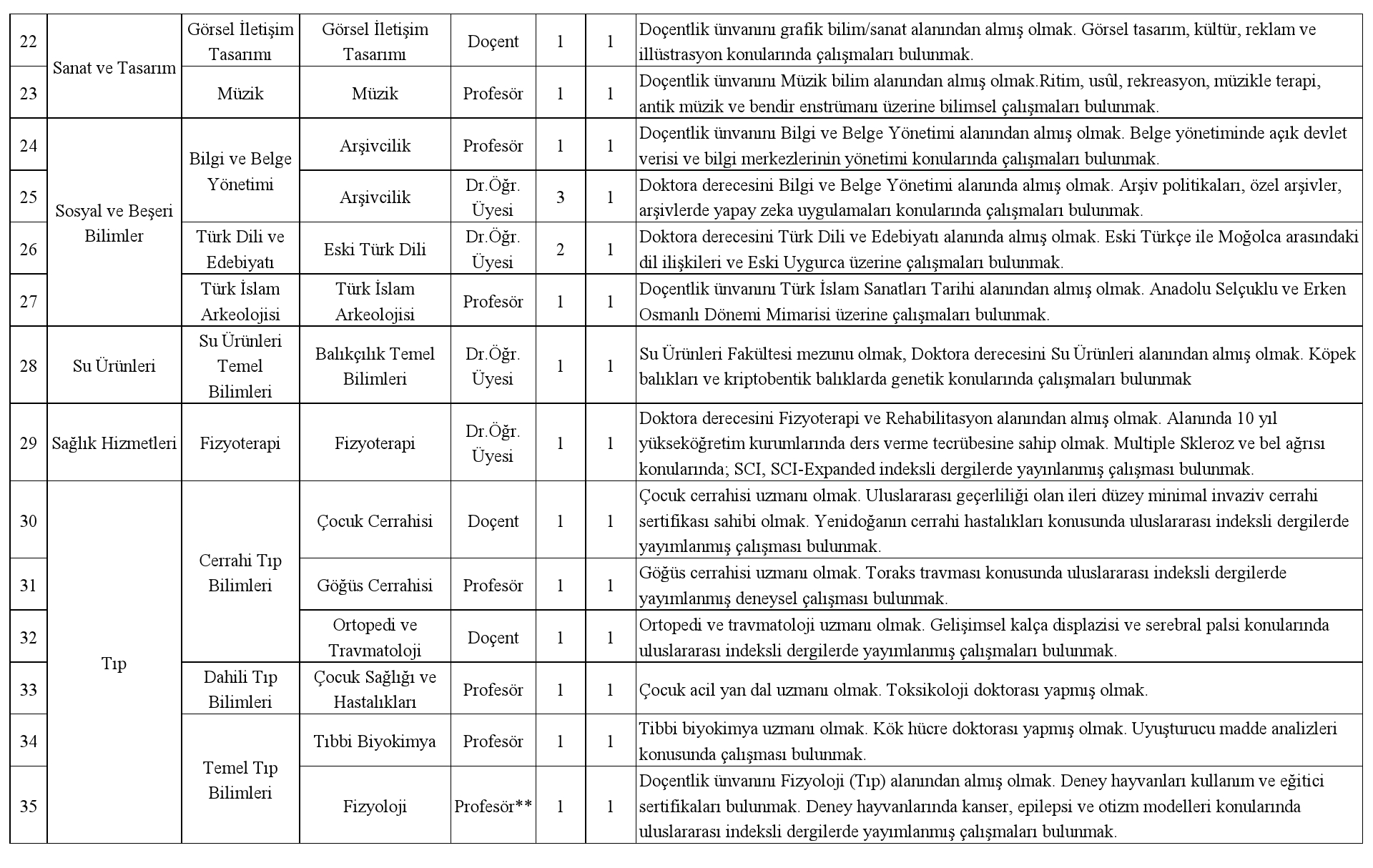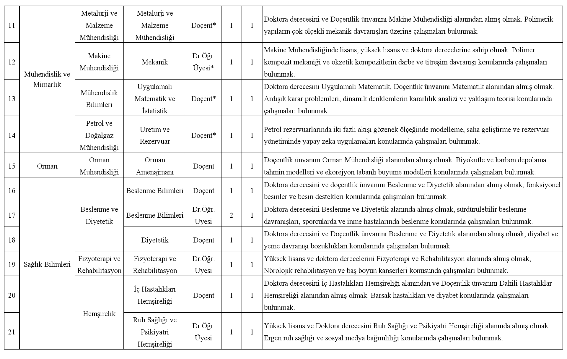 Üniversitemizin aşağıda belirtilen takımlarına 2547 sayılı Yükseköğretim Kanunu, Öğretim Üyeliğine Yükseltilme ve Atanma Yönetmeliği ve Üniversitemiz Senatosu’nca belirlenerek Yükseköğretim Kurulu Başkanlığı tarafından onaylanan Akademik Atama ve Yükseltme Kriterleri uyarınca öğretim üyeleri alınacaktır.