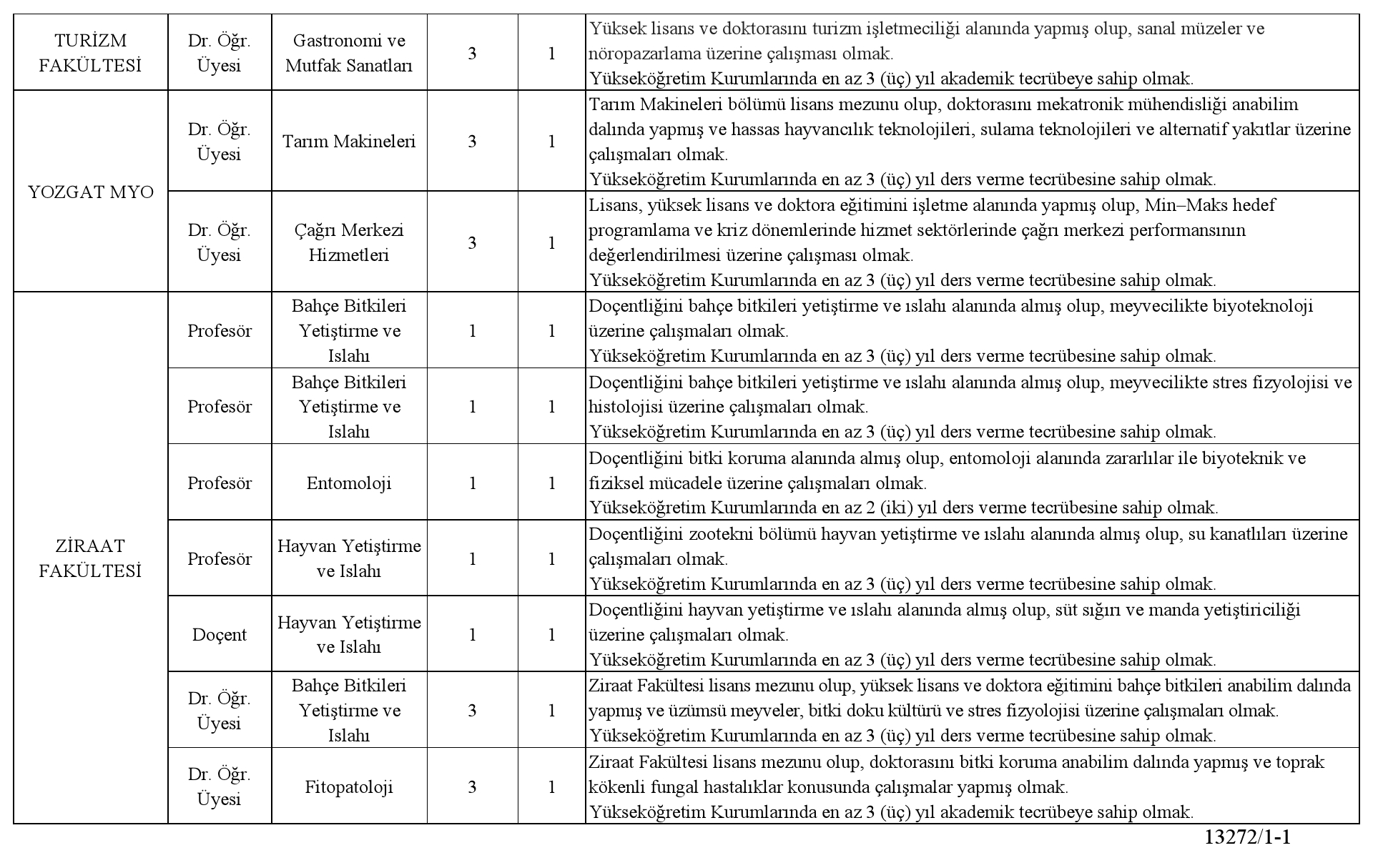 Üniversitemizin aşağıda belirtilen ünitelerine, 2547 sayılı Yükseköğretim Kanunu, Öğretim Üyeliğine Yükseltilme ve Atanma Yönetmeliği, 657 sayılı Devlet Memurları Kanununun 48. unsuru ve Üniversitemiz Akademik Yükseltilme ve Atanma Yönergesinde belirtilen kuralları sağlayanlardan Öğretim Üyesi alınacaktır.
