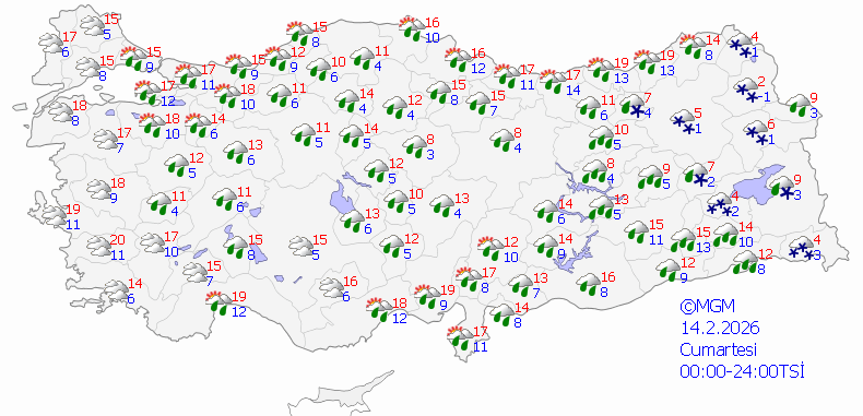 Yurdun doğusunda ise kuvvetli karla karışık yağmur ve kar görülecek. Bilhassa Malatya, Adıyaman, Elazığ, Tunceli, Erzincan, Diyarbakır ve Bingöl’de aralıklı ve lokal olarak kuvvetli sağanak yağış bekleniyor.