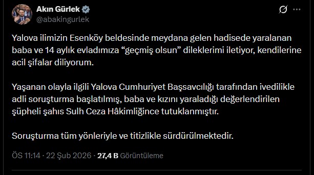 Jandarmadaki süreçlerinin akabinde isimli mercilere sevk edilen Ş.E. tutuklanırken baba ile kızı ise Yalova Eğitim ve Araştırma Hastanesi’nde tedavi altına alındı.