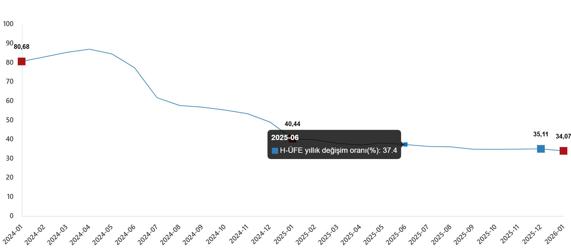 | Bir evvelki yılın birebir ayına nazaran değişim oranı | 34,07 | 40,44 | 80,68 |