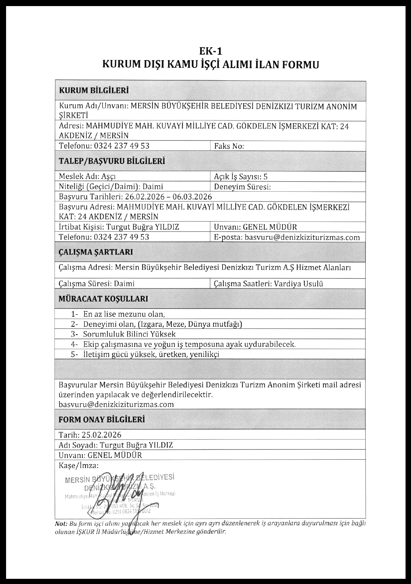 Mersin Büyükşehir Belediyesi 5 Personel Alacak. Son müracaat tarihi 6 Mart 2026
