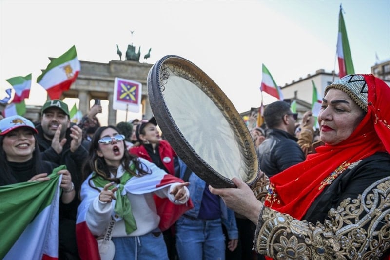 İranlı muhaliflerin şov adreslerinden biri Almanya’nın Berlin kentiydi. Göstericiler tarihi Brandenburg Kapısı’nda bir ortaya gelerek bayraklar sallayıp sloganlar attı.